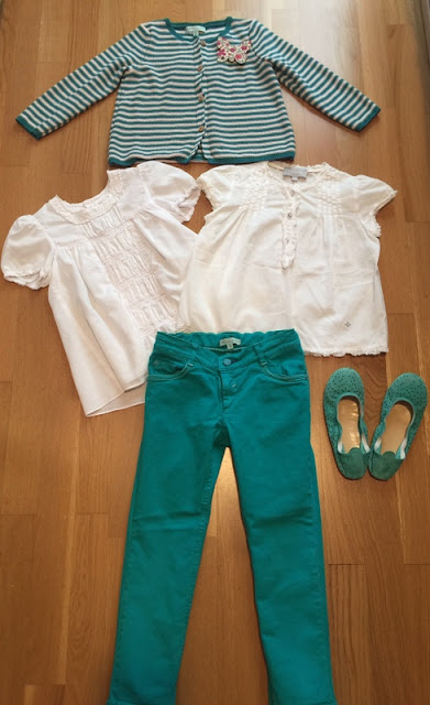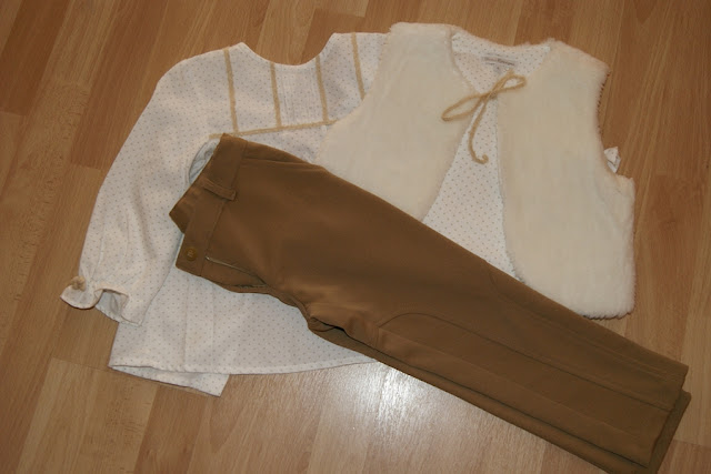 Descripción: chaqueta, dos blusas blancas, pantalones y bailarinas